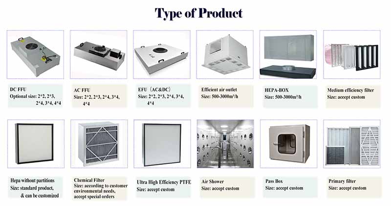 The output of FFU reaches 150,000 units, and the HEPA filter is 200,000 pieces. The company's strong technical force, strict quality management, and high-quality after-sales service have won the trust of domestic and foreign customers.