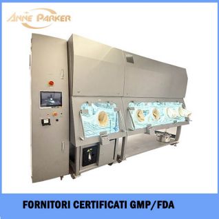 Unità VHP: Generatore VHP a principio flash a secco integrato, modalità di controllo integrata e unificata con il pass box VHP, controllo stabile di concentrazione VHP, temperatura, umidità e saturazione della camera.