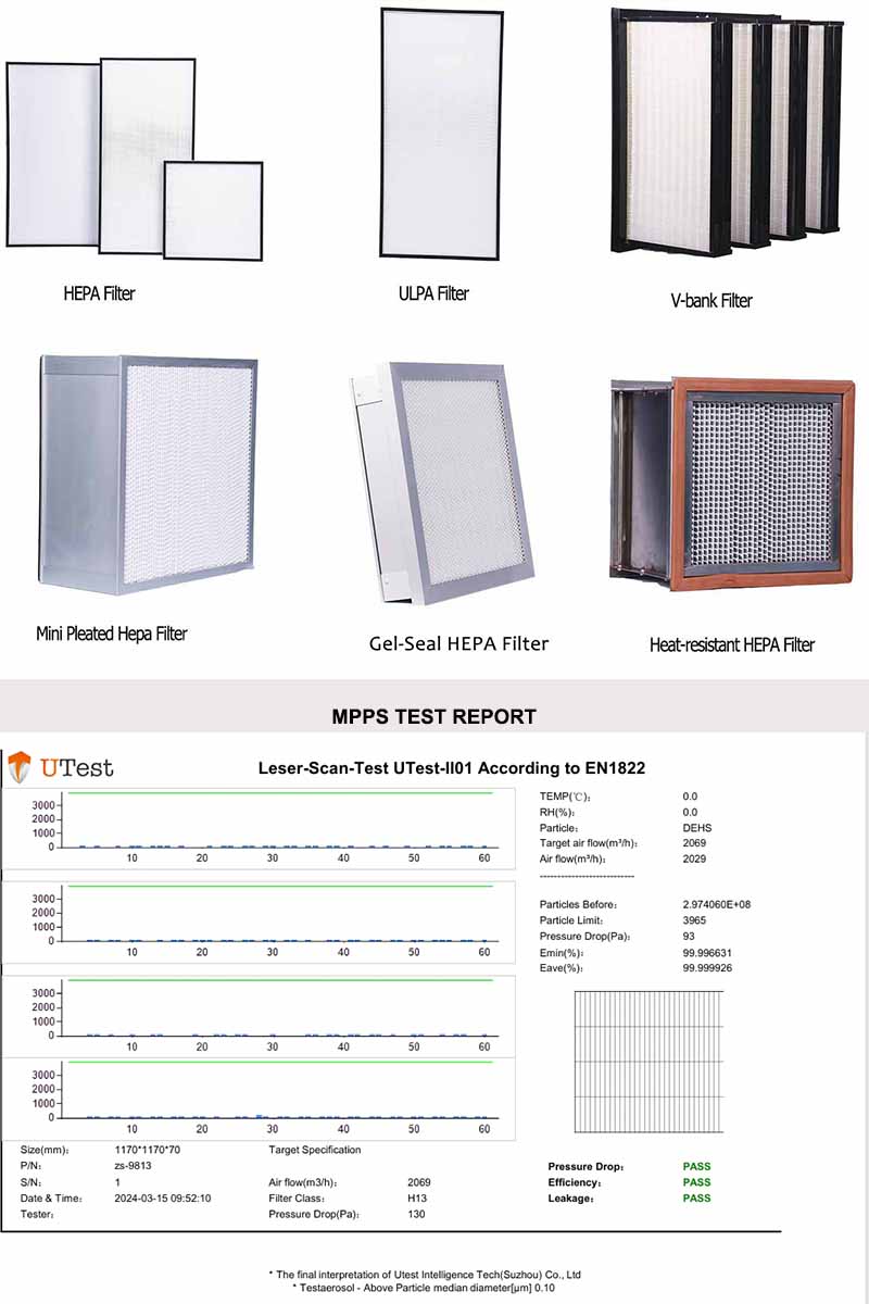 Each filter will be strictly tested before leaving the factory to ensure zero leakage. And we can provide the MPPS test.